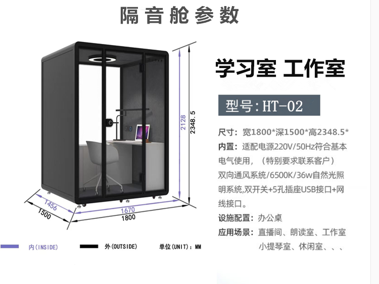 产品名称:移动隔音舱学习工作室