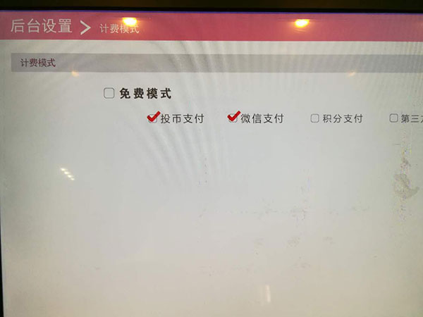 1.在后台设置收费模式,勾选“投币支付”
