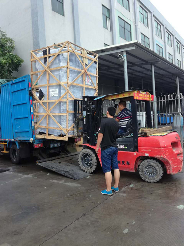 最后的步骤,封装完成后,我们会用叉车把装有移动k歌房货品的木架抬上车,然后货车进行运输。点唱机产品订购热线:400-030-2780