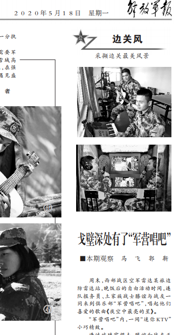 军营里有一些音乐迷。在拥有手机网络信号的营中,在业余时间,我们可以选择手机冲浪作为一种休闲方式,但是手机不能解决官兵的所有精神需求。一些军官也渴望向军营增加一些文化和娱乐硬件设施。
