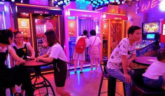 全民K歌在杭州开了第四家店自助K歌店。它由7间迷你KTV房、休闲娱乐区和休息区组成,占地约500平方米。其中,休闲娱乐区设有弹珠机、自助贩售机、自助橙汁机等,颇为契合“自助”、“无人值守”的概念??瓷先?,这和传统KTV、迷你KTV都不太一样。