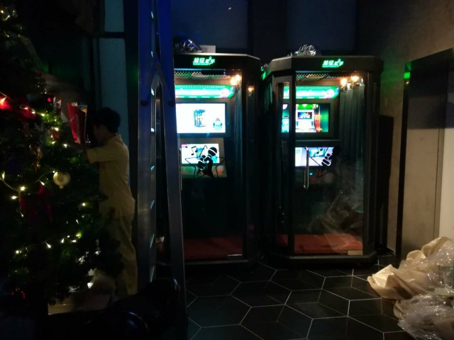 很多时候,大家在 KTV 里聚会时,往往不能好好唱歌,而是让摇骰子、打牌、玩游戏这些活动占据了主场,大概这样伤了很多像我这样麦霸的心。迷你KTV玻璃房有两把椅子,麦克风,耳机和大屏幕,顾客可以点上一首自己喜欢的歌唱,唱完随时就可以走。